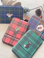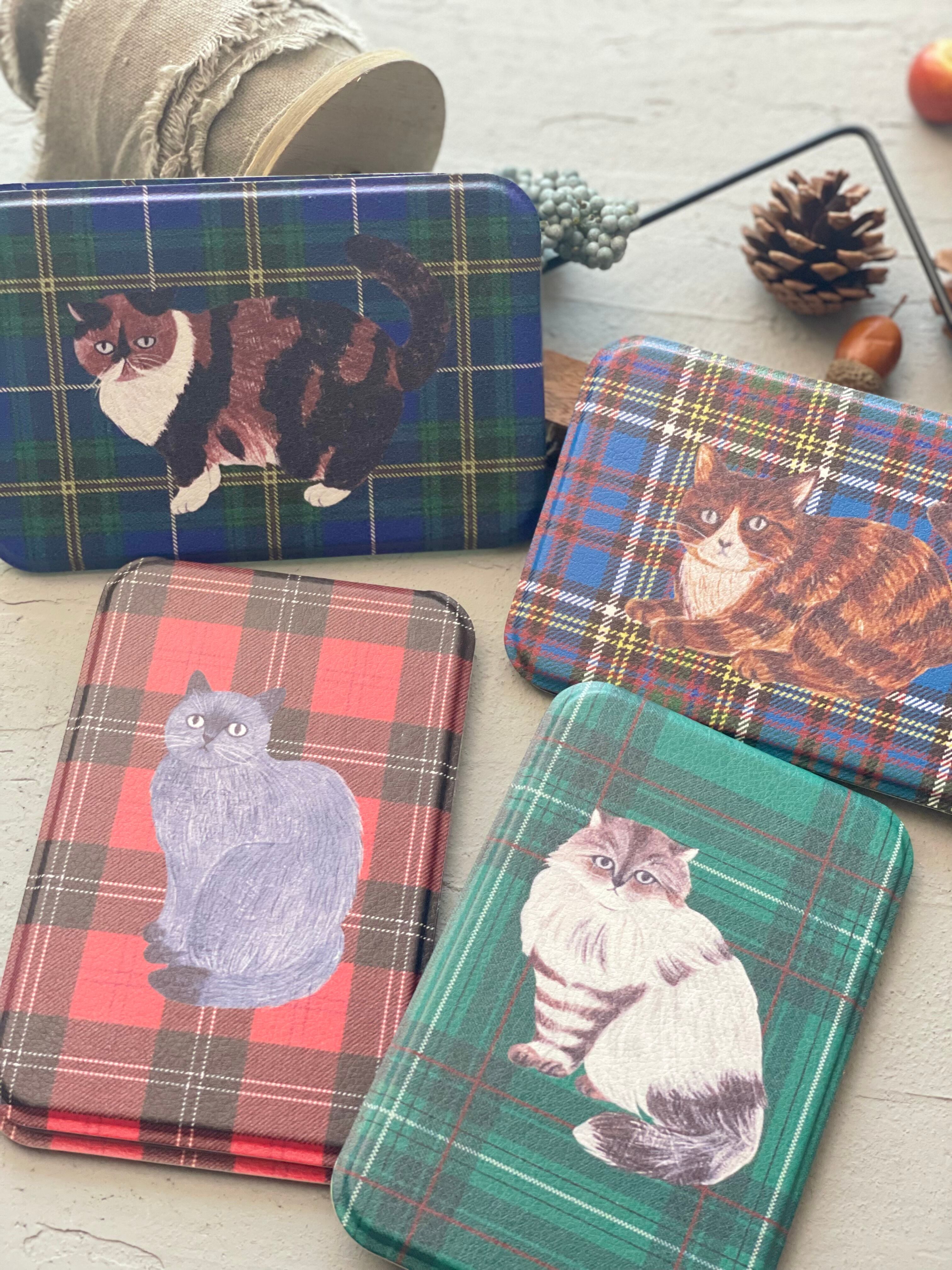 リラックスした表情のネコたちとタータンチェック柄がおしゃれ♬