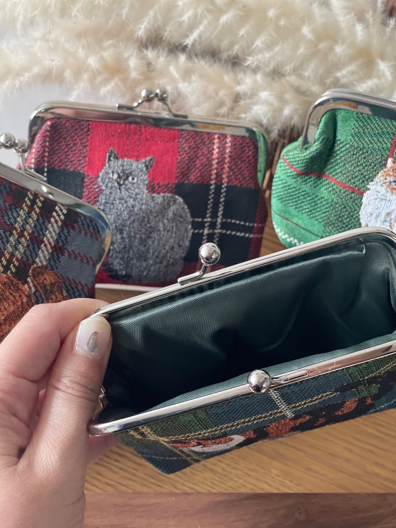 がま口ポーチに織り込みました。