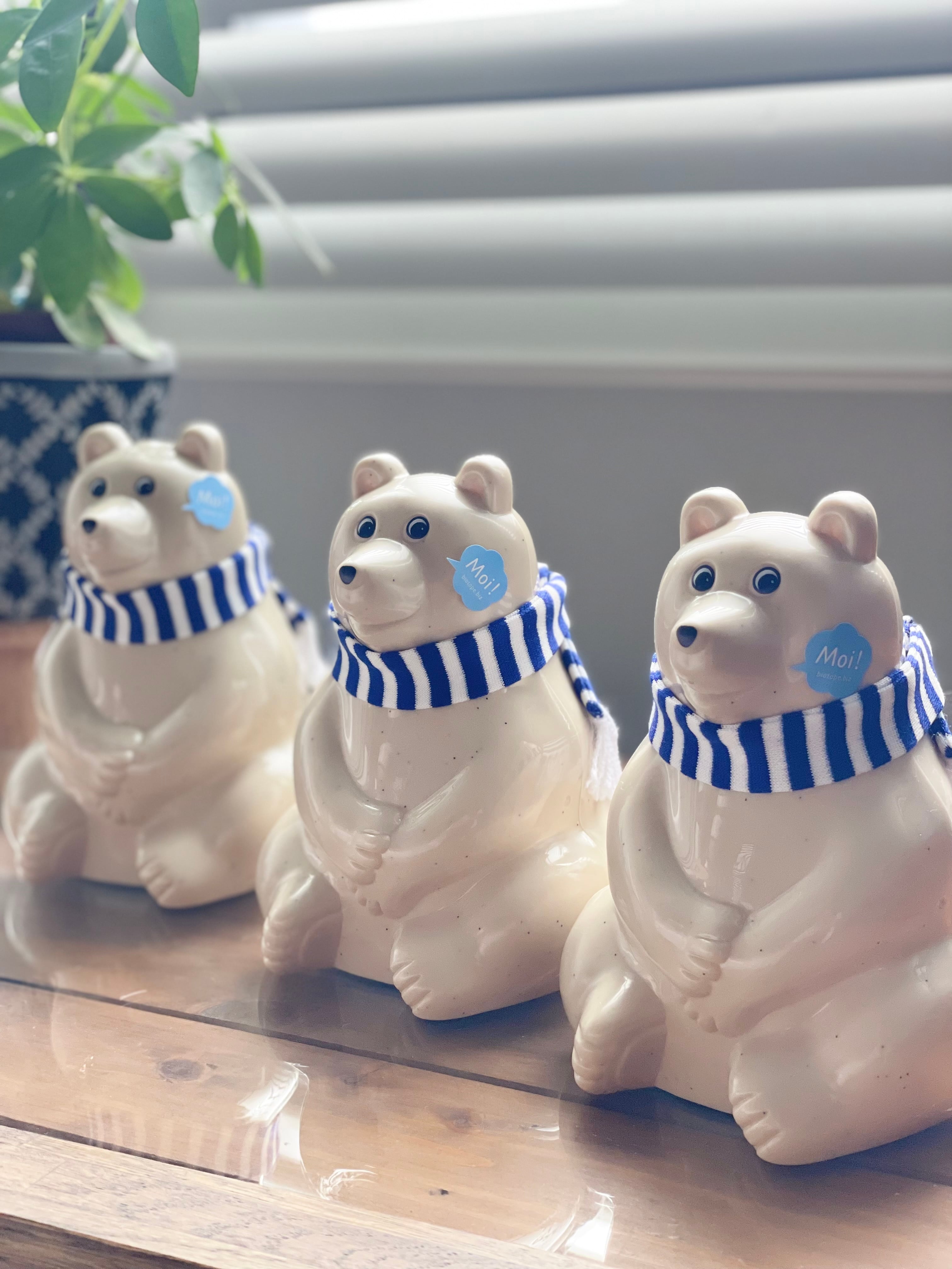 愛嬌ある表情が可愛いフィンランド製の白クマ貯金箱です。