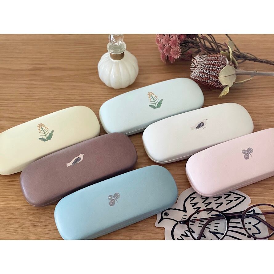 マットな淡いカラーに松尾ミユキさんデザインの動物やお花たちがプリントされたメガネケース◎