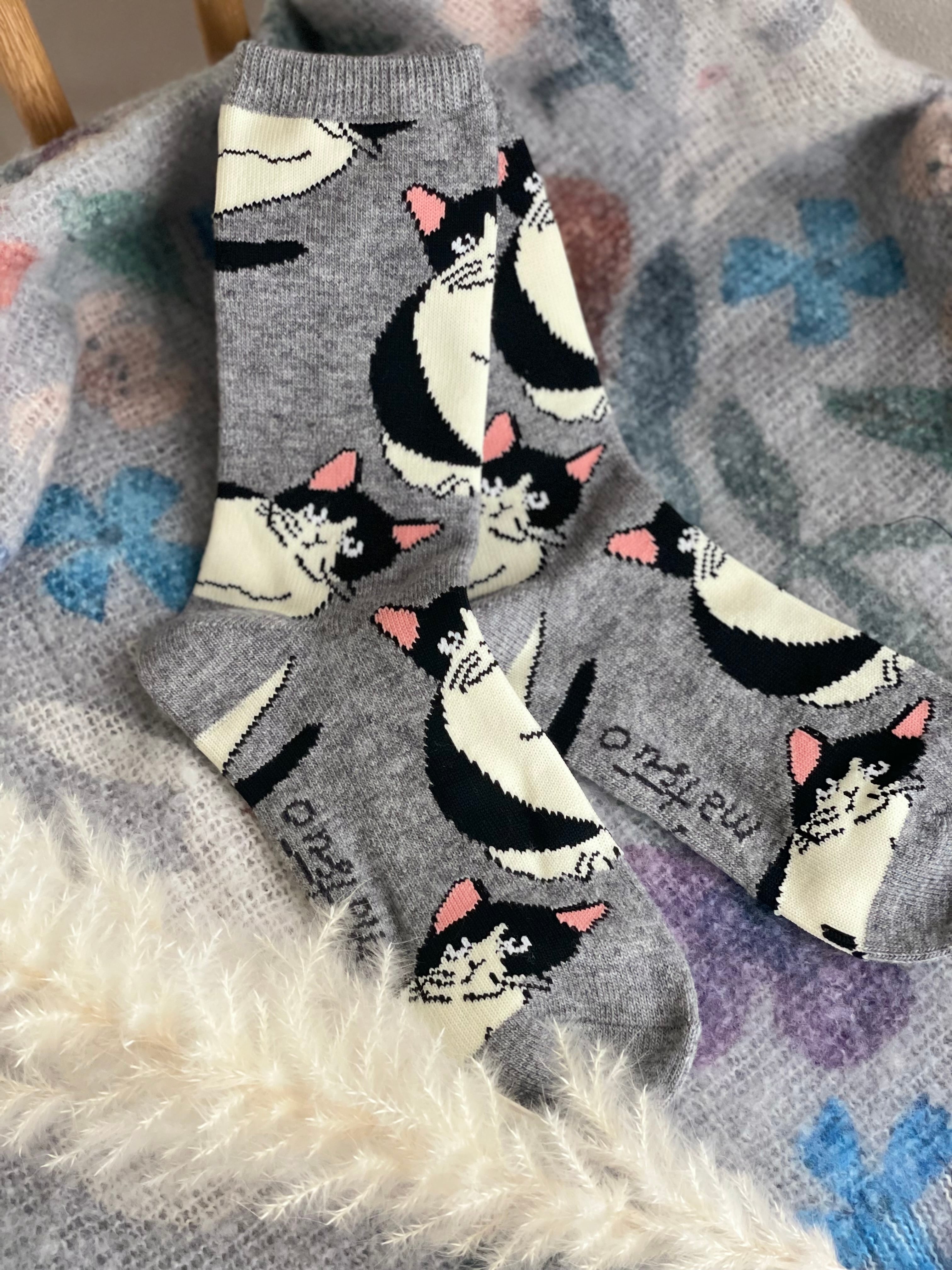 人気イラストレーター松尾ミユキさんデザインの猫靴下。