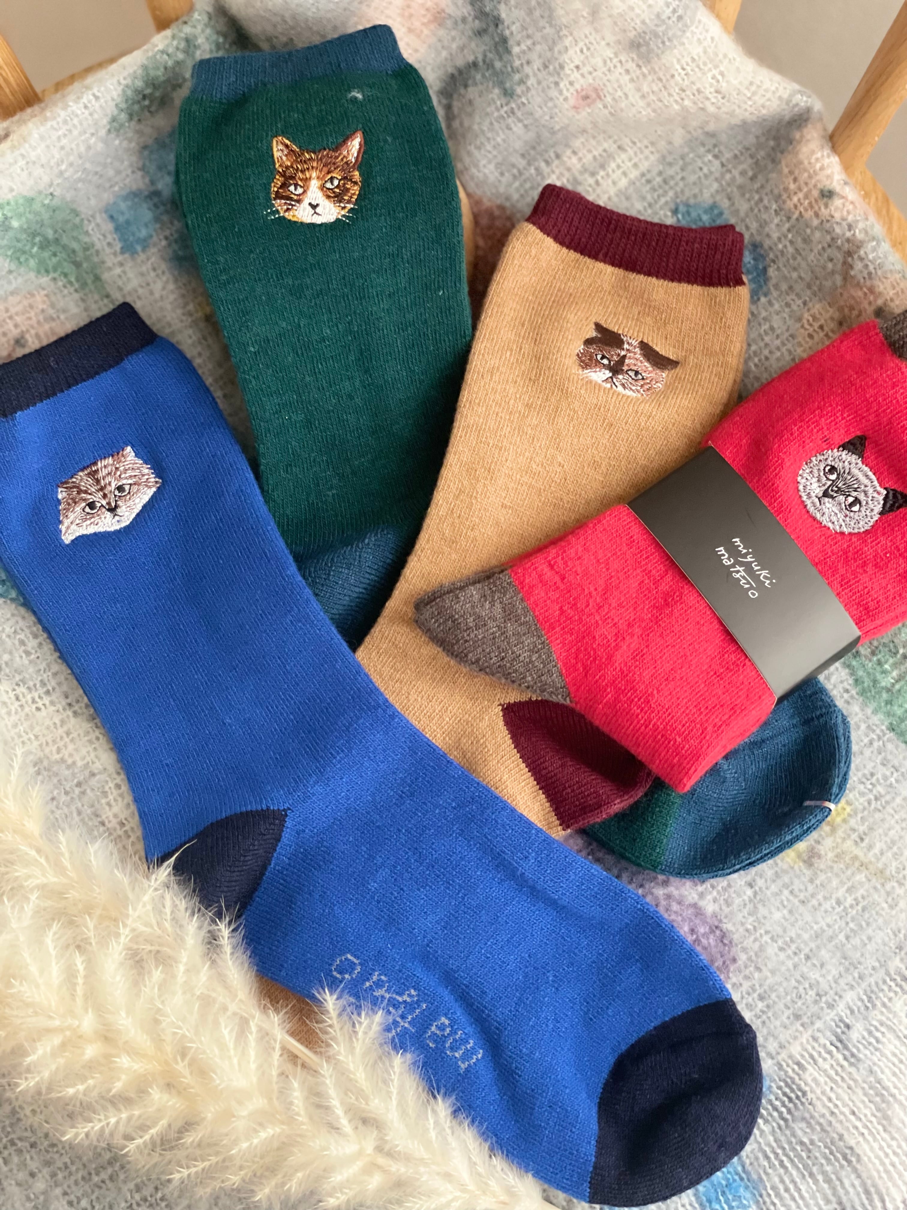 人気イラストレーター松尾ミユキさんデザインの猫靴下。