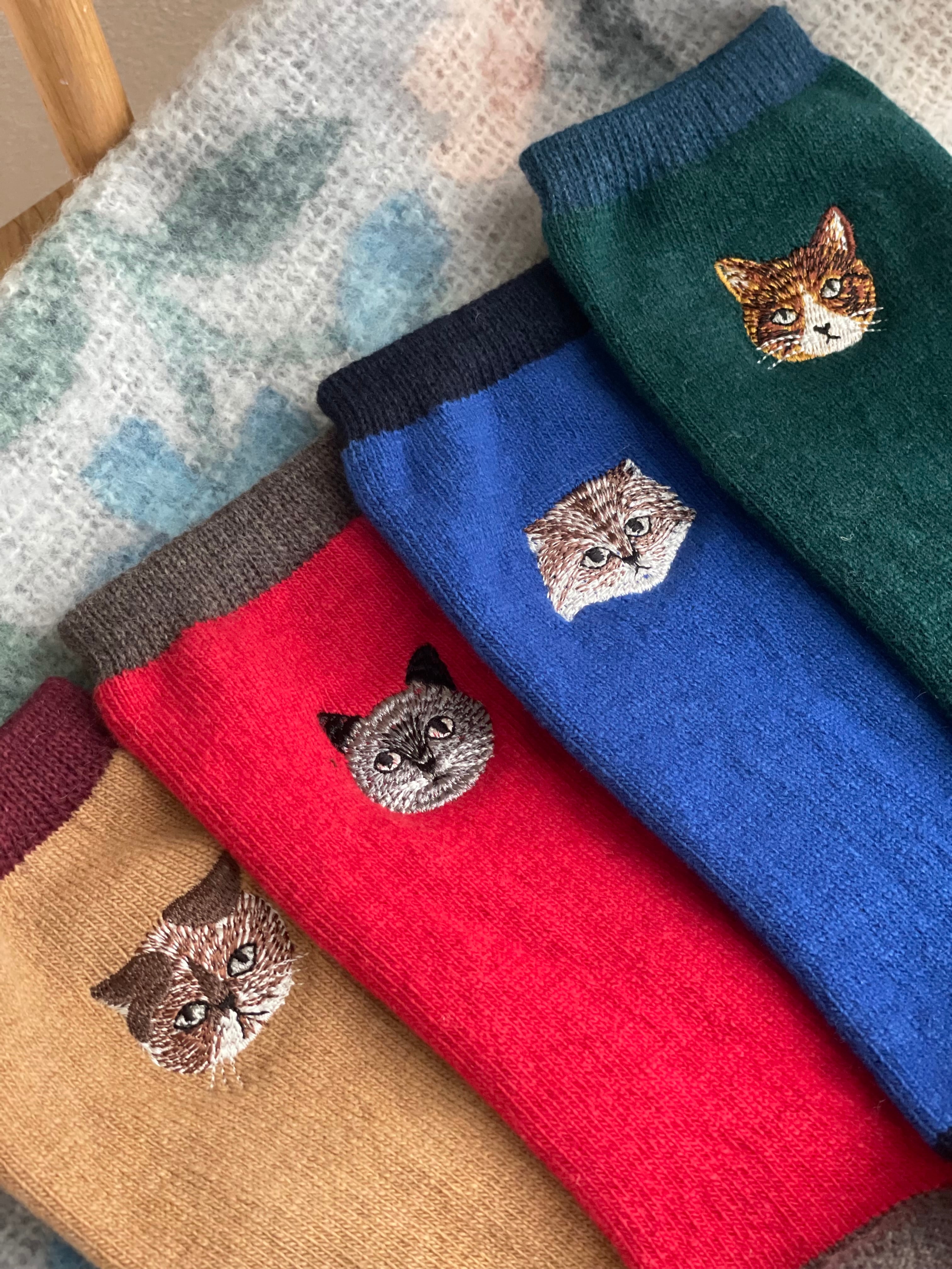 人気イラストレーター松尾ミユキさんデザインの猫靴下。