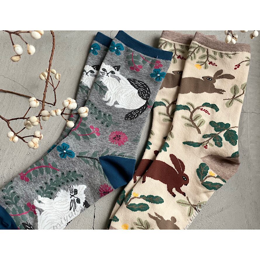 人気イラストレーター松尾ミユキさんデザインの靴下『2024.2月』